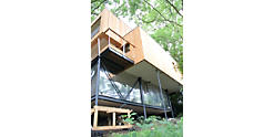 The Caravan Treehouse in Dursely, Gloucestershire features an envelope wrapped in a range of hi-tech DuPont building membranes to achieve high standards of sustainbility, airtightness and thermal efficiency