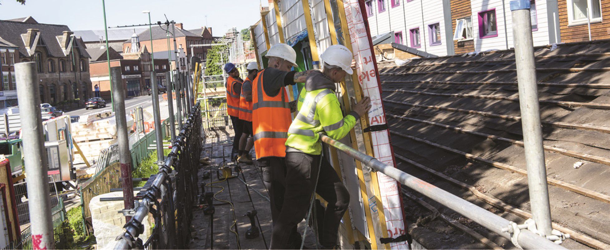On the roof panels, a similar build up is employed, but here a layer of DuPont™ Tyvek® Supro un-derlay is used. Unrestricted when tested to BS5534 +A2 2018, Tyvek® Supro can also be used in any location in the UK, regardless of site location, height above sea level, proximity to water, site topography and ceiling condition. Adding to the convenience is the roll size – being 3.0 x 50m means minimizing overlaps which increases the speed of installation in the factory.