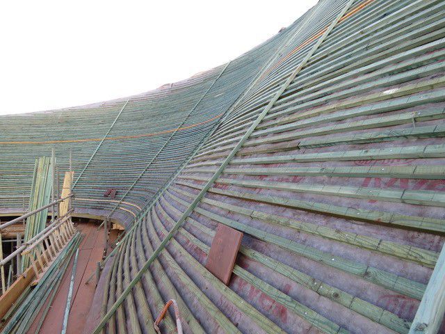 Contractors Rowlands Roofing combined both craftsmanship and innovation to create the sweeping curves of the building’s 820m2 roof, which is topped with 60,000 hand cut clay tiles.