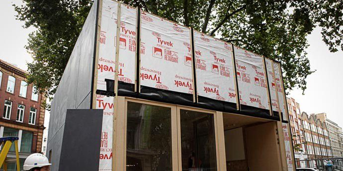 The WikiHouse 4.0 project by The Building Centre, Arup and 00 design for the London Design Festival featured DuPont™ Tyvek® FireCurb® advanced breather membranes to protect the structure. Photo Margaux Carron for The Building Centre, all rights reserved.