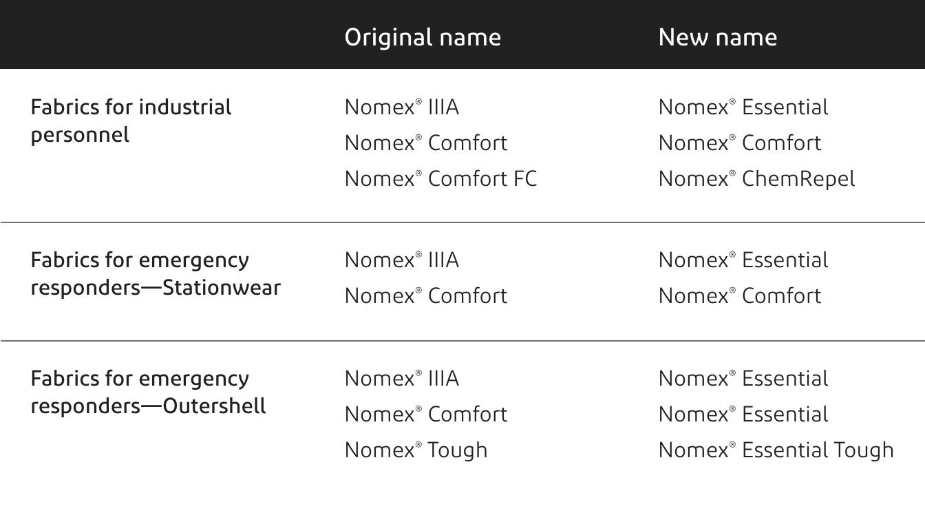 In direct response to insights gathered from end users around the world, DuPont is introducing a globally consistent naming convention that more simply conveys the protection, durability, comfort and performance of DuPont™ Nomex® solutions.